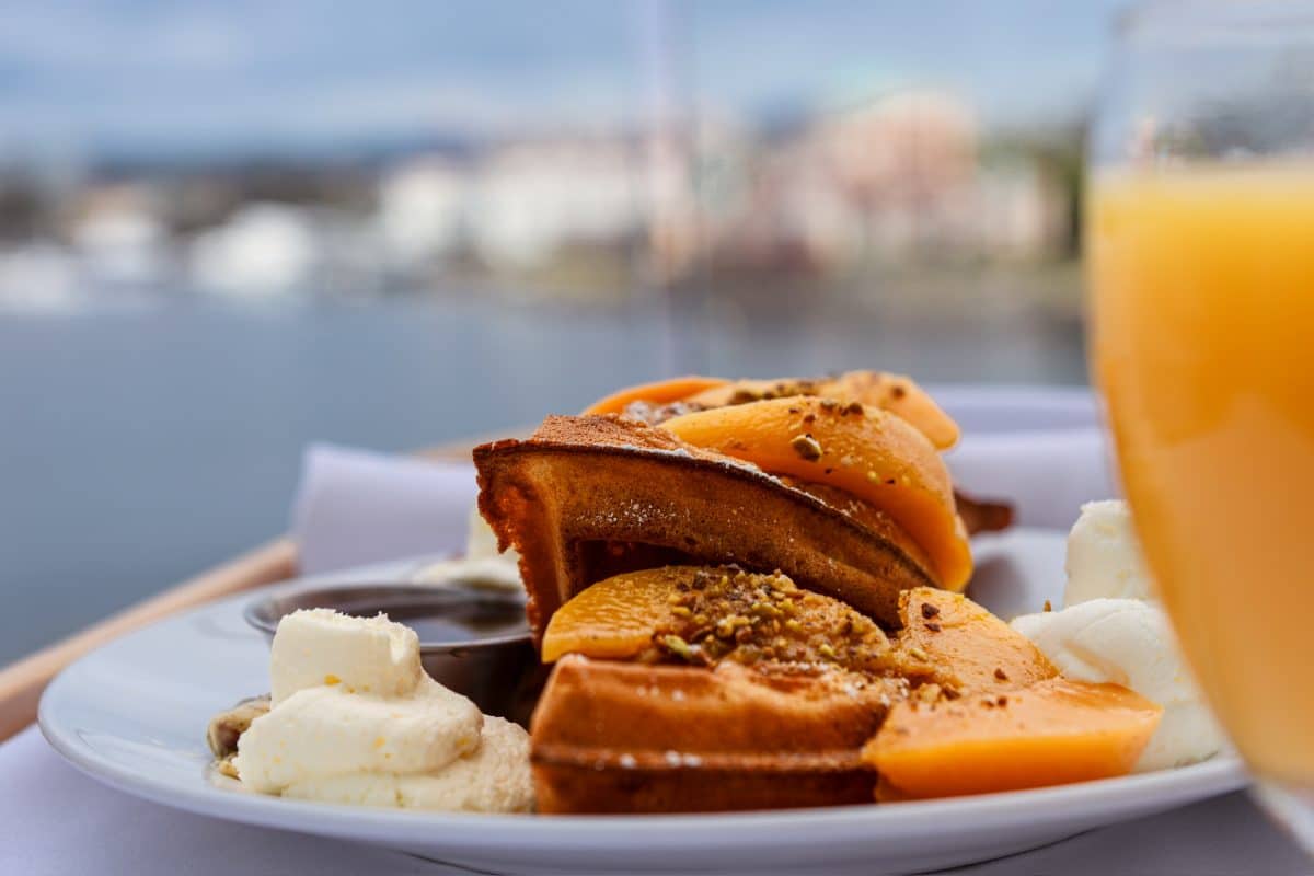 ✔️ Aura Waterfront Restaurant + Patio serves up locally inspired dishes for breakfast and dinner.