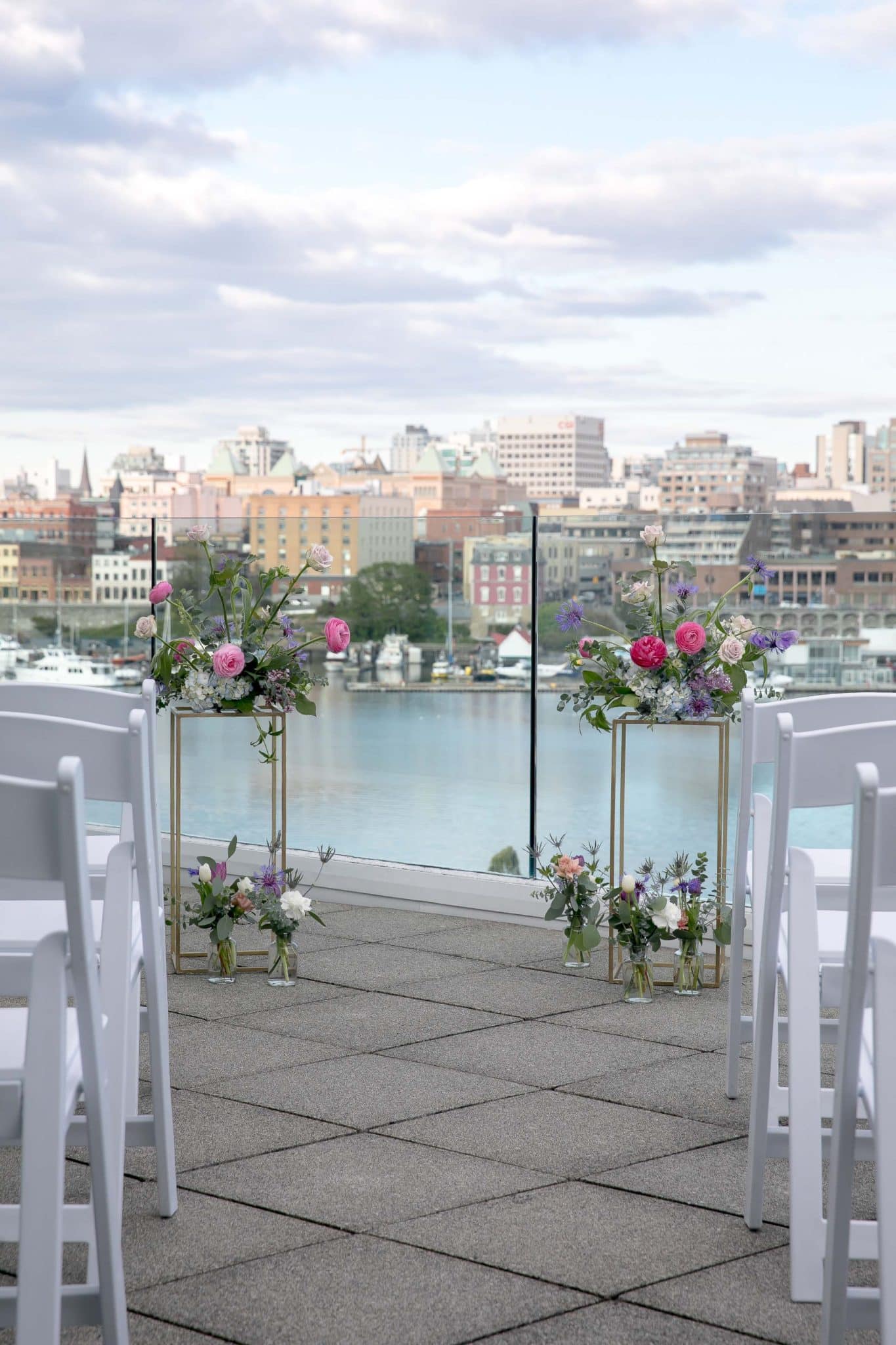 This exceptional wedding venue features our top-floor panoramic Rogers Suite with endless views of Victoria’s inner and outer harbours.
